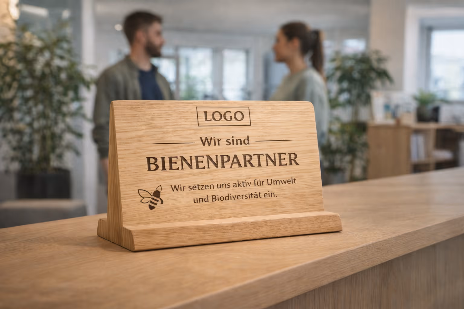 ✔ Bienenpartner-Siegel als Aufsteller mit Ihrem Firmenlogo